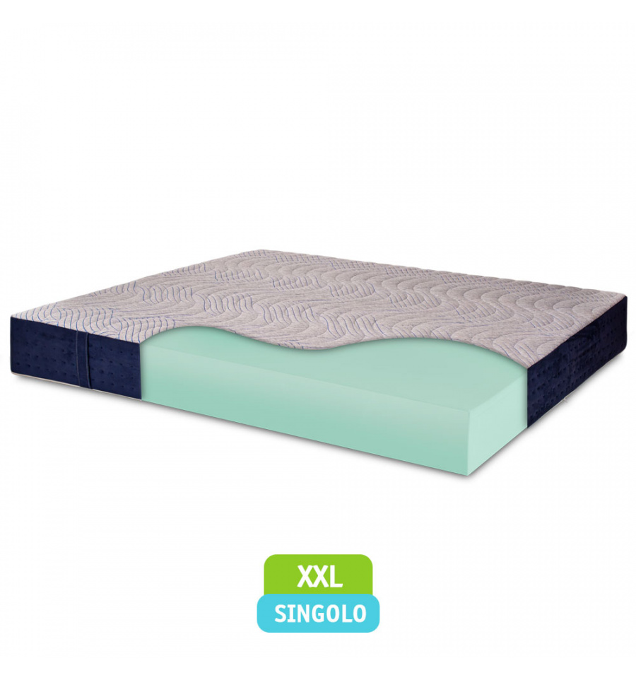 Per dormire bene è importante trovare una superficie di appoggio che ci permetta di rilassarci di notte e di farci sentire a nostro agio. Per coloro che sono abituati a dormire su un materasso rigido singolo, abbiamo creato il modello XXL, alto 24 cm e con una lastra interna in poliuretano espanso di nuova generazione ad elevata rigidezza.